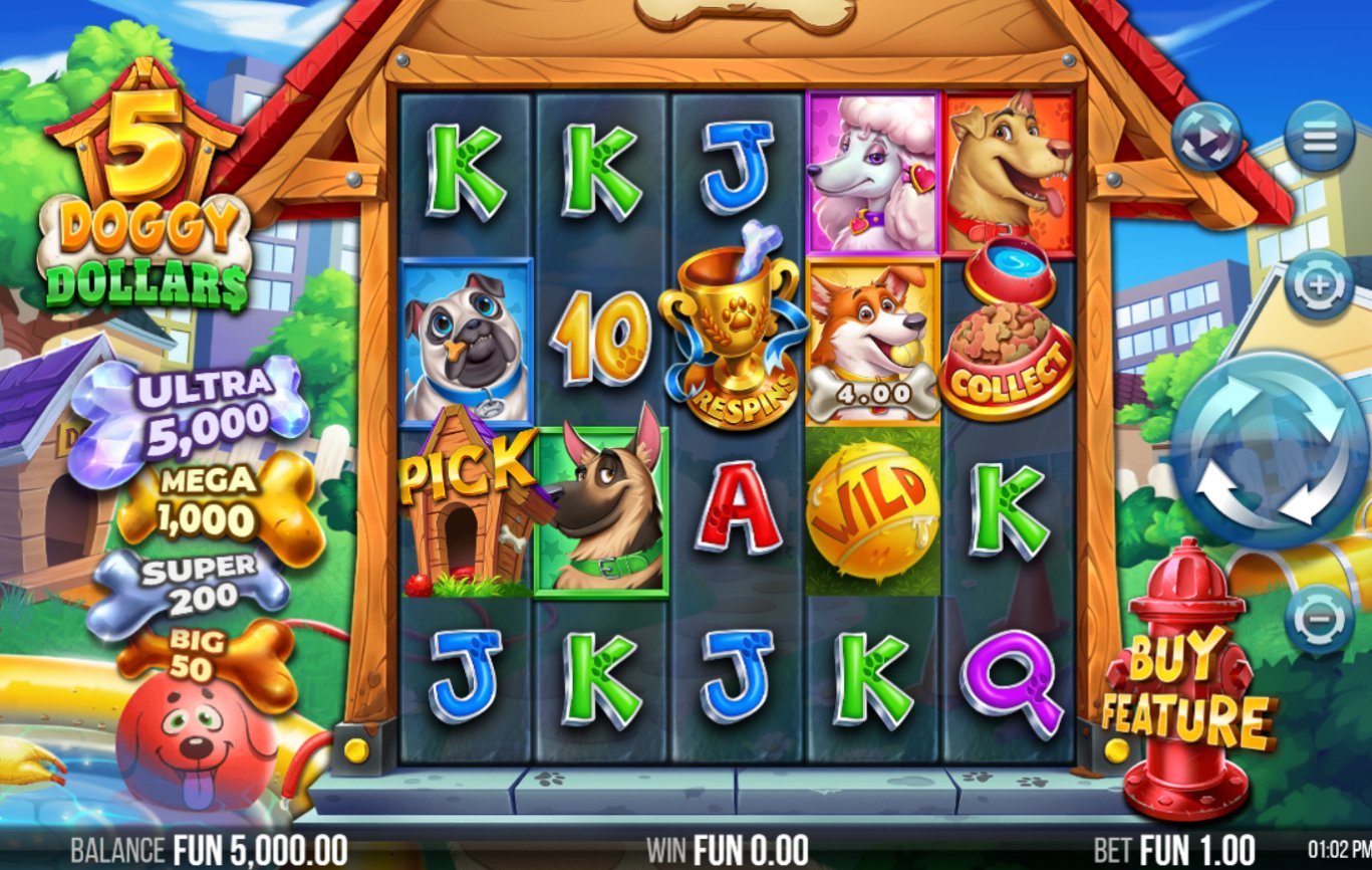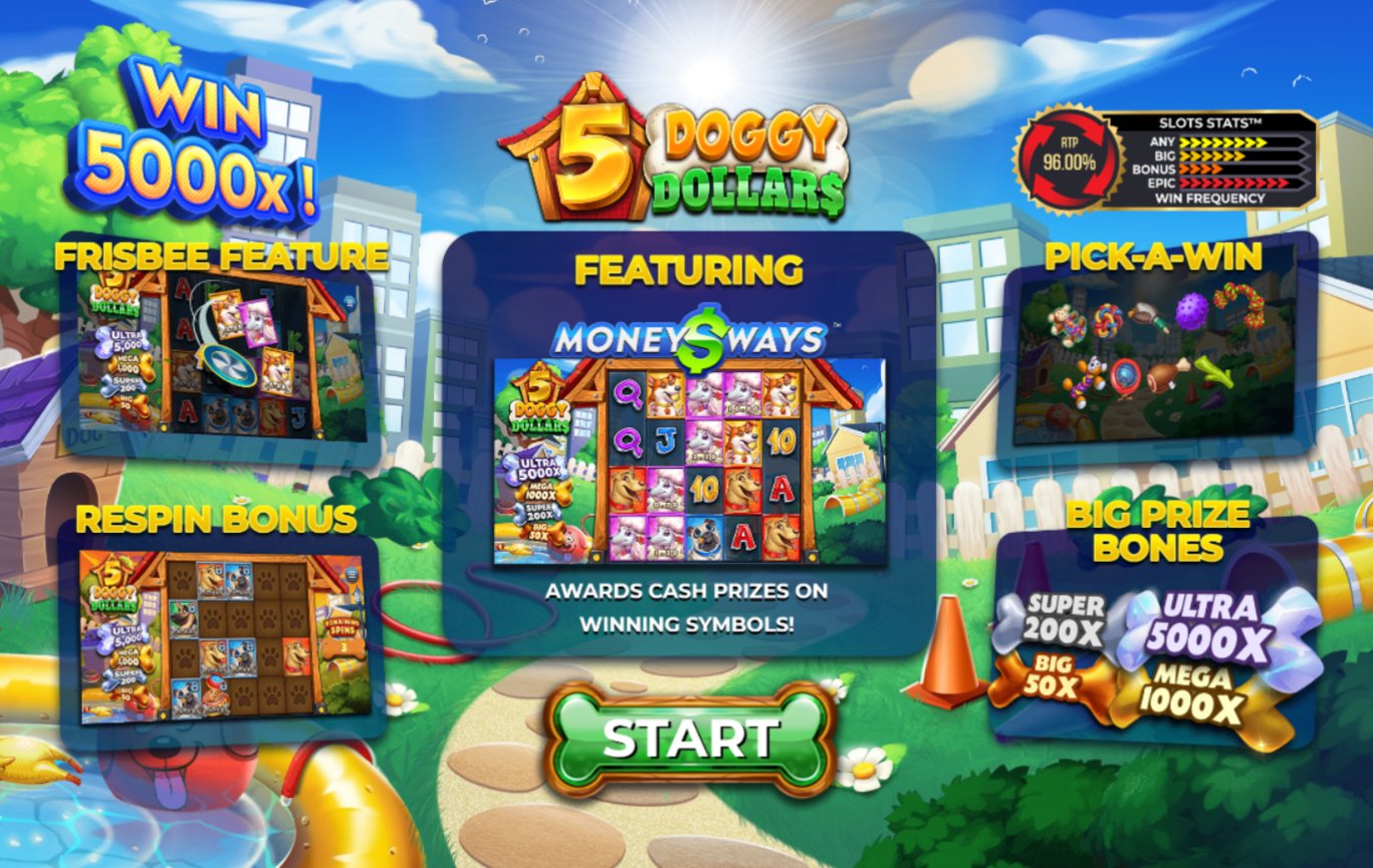 5 Doggy Dollars er skabt i fællesskab af de innyttive hjerner hos 4ThePlayer og Relax Gaming, og er et charmerende og nuttet hundetema-eventyr. Med et attraktivt 5×4 layout og svimlende 1024 betellerngslinjer tilbyder spillet spillerenne et stort lærred til at afdække vindende kombipåtioner.