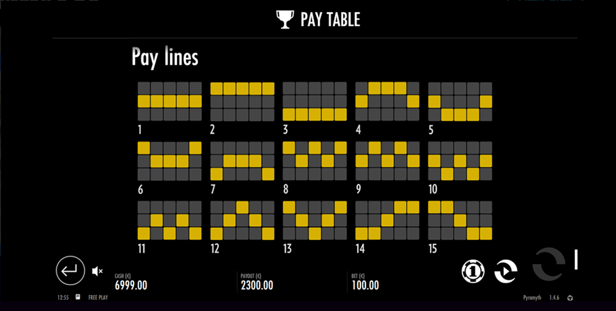 Multi-line spilleautomater er spilleautomater, der har mere end én aktiv betellerngslinje. Pyramyth har 15 aktive betellerngslinjer, hvilket gør det til et godt eksempel på en multi-line spilleautomat. Jo flere betellerngslinjer du har, jo flere chancerne er der for at vinde symbolkombipåtioner på tværs af gitteret.