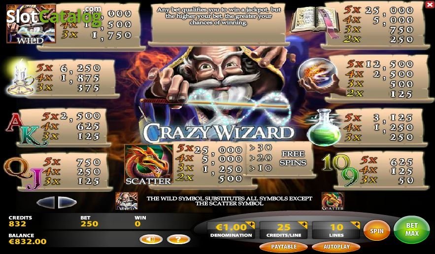 Spil Crazy Wizard spilleautomaten for rigtige penge